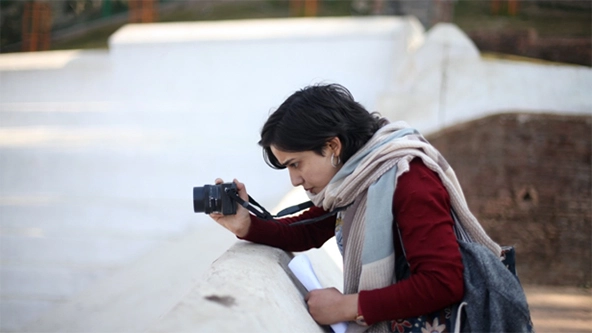 Global Press reporter Sunita Neupane takes photos during a photojournalism training in Nepal in March 2020. (Photo by Mareike Guensche)