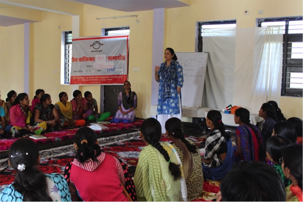 Safeena Hussein addressing members of Team Balika, a group of community mobilizers working in the field.