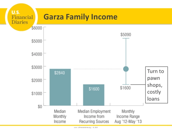 The Garzas, a family in California, stitched together income from several sources, none of which were fully reliable. (Image: "Spikes and Dips: How Income Uncertainty Affects Households," US Financial Diaries, 2015)