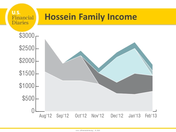 What does income volatility look like for a household? Consider the Hossains (families’ names are changed to protect their privacy), an immigrant family in New York.