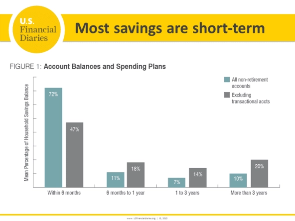 USFD participants expected to spend the majority of funds they thought of as savings within a year, even savings held outside of transactional accounts. (Image: "Savings Horizons", US Financial Diaries, 2016)
