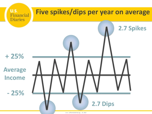 Spikes and dips are not just a problem of the poor. Even middle-income households in the study faced substantial income fluctuations.