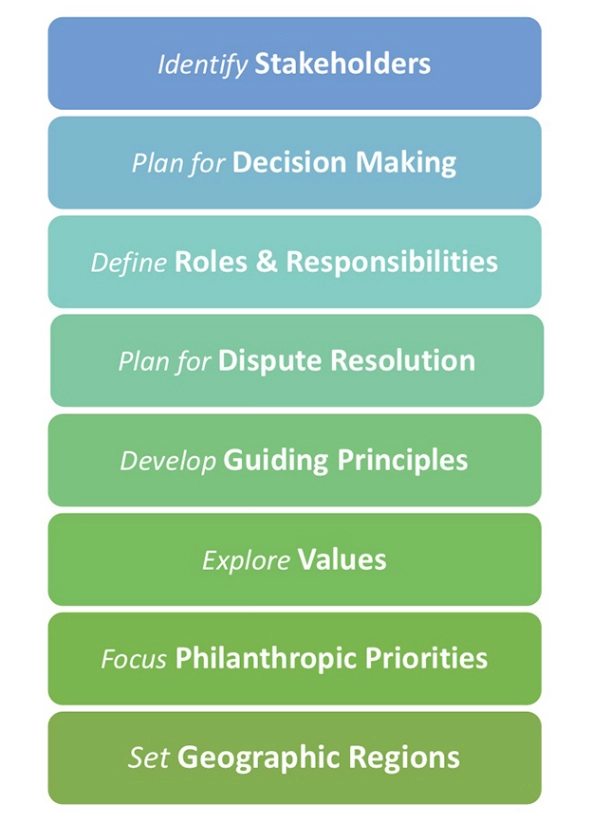 - Set up an orientation where family members discuss family history and the founding philanthropic legacy and vision, as well as any historical grantmaking by family members and their prior funding guidelines.