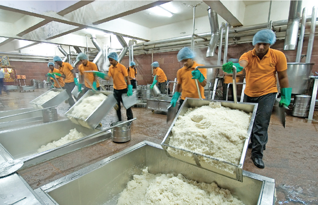 Fifteen years ago, at a Hare Krishna temple in Bangalore, India, worshipers noticed that children often came to eat the meals that the temple customarily served at the end of religious services. The kids should have been in school. But for them, as for millions of other Indian children, getting enough food was a more pressing priority than getting an education. Instead of giving out meals at the temple, some of the worshipers started bringing food to a nearby school. The kids who had been showing up on the temple steps now showed up in class. “This was just one small temple, solving the food problem in its community,” recalls Binali Suhandani, head of resource mobilization at the Akshaya Patra Foundation, an organization that emerged from the efforts of those Hare Krishna worshipers. Akshaya Patra has come a long way since then. Today the organization maintains a network of high-efficiency kitchens that enables it to serve hot lunches to 1.4 million children at more than 10,500 schools in 10 Indian states.