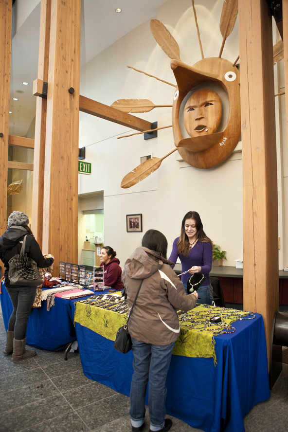Foundation’s Anchorage Native Primary Care Center, Alaska Native artists sell their work under “Bird Spirit Mask” by Inupiat artist Sylvester Ayek. (Photo Courtesy of Southcentral Foundation)