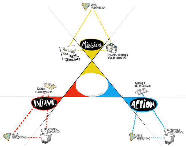 A successful business model will align mission, action, and income in sustainable ways to achieve the goals of the organization. (Image courtesy of The Value Web)