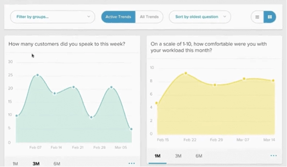 Officevibe works similarly. Every week, the platform sends an email to all employees with five questions asking for feedback about their work, and their relationships with co-workers and managers. Though its five-question surveys are not customizable, the company’s bank of 350 questions includes both quantitative and qualitative queries, each with a basis in organizational psychology. Organizations can also dig deeper based on feedback using follow-up surveys and polls.