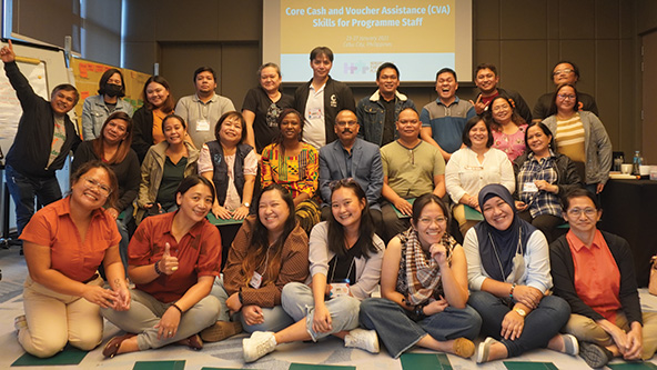 HPP partners participate in a CALP-facilitated training on core cash and voucher (CVA) skills for program staff held in Cebu City in January 2023. (Photo courtesy of CARE Philippines)