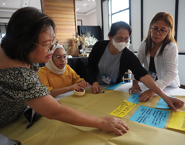 During the second day of the April 2023 General Assembly of the HPP, women leaders of select HPP member organizations brainstorm ideas. (Photo courtesy of Mary Therese Norbe)