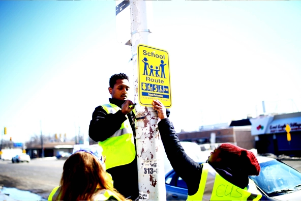 Service year corps members with the AmeriCorps Urban Safety Program work to increase public safety in targeted neighborhoods in Detroit. (Image courtesy of AmeriCorps Urban Safety Program)