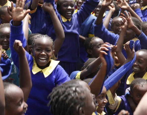 V-Peace students celebrating their graduation from the self-defense skills course taught at Dolphin Anti-Rape and AIDS Control Outreach program in Nairobi, Kenya. (Photo by Paula Allen for V-Day)