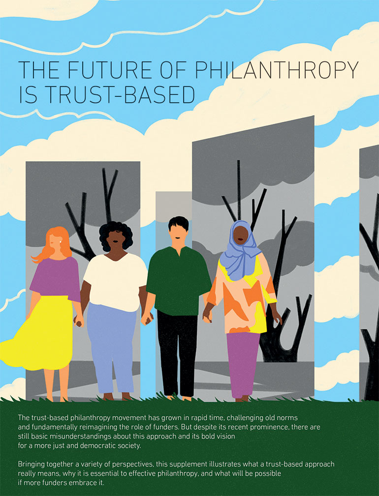 The trust-based philanthropy movement has grown in rapid time, but there are still basic misunderstandings about this approach and its bold vision for a more just and democratic society. This supplement illustrates what a trust-based approach really means, why it is essential to effective philanthropy, and what will be possible if more funders embrace it. Sponsored by the Trust-Based Philanthropy Project