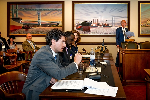 Free Press Action Fund News Voices Director Mike Rispoli testifying in the New Jersey State House in favor of the Civic Information Bill. (Photo by Tim Karr for Free Press Action Fund, June 2018. Democracy Fund did not make grants or earmark funds to support Free Press Action Fund’s lobbying efforts.)