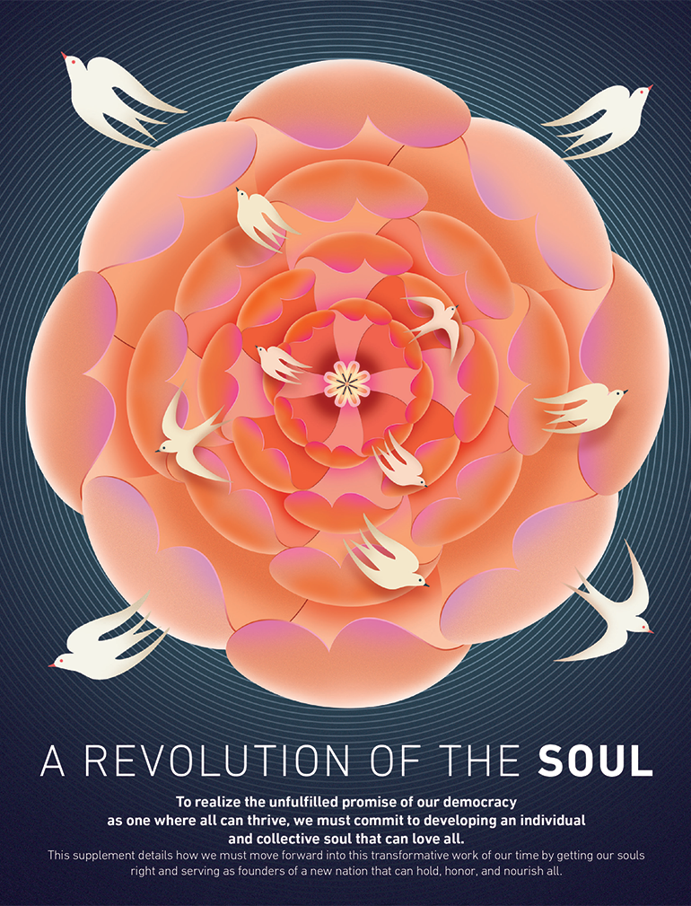 To realize the unfulfilled promise of our democracy as one where all can thrive, we must commit to developing an individual and collective soul that can love all. This supplement details how we must move forward into this transformative work of our time by getting our souls right and serving as founders of a new nation that can hold, honor, and nourish all. Sponsored by PolicyLink