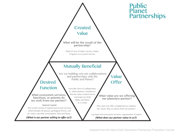 The Public-Planet Partnerships Canvas acts as a guide in selecting the right planetary partner and finding a mutually beneficial collaboration between the public and planet.