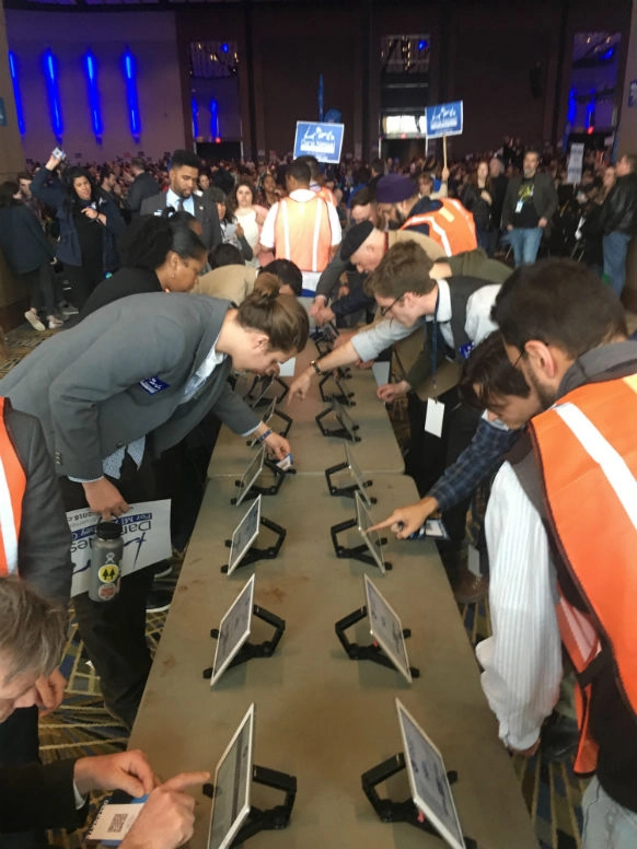 Voters submit their votes with the Voatz tablet system at the Michigan Democratic State Party Convention in April 2018. (Photo courtesy of Voatz)