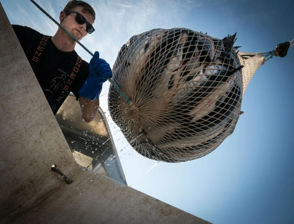A fisherman in southeast Alaska pulls in his catch of wild salmon. (Photo by Graham McDowell)