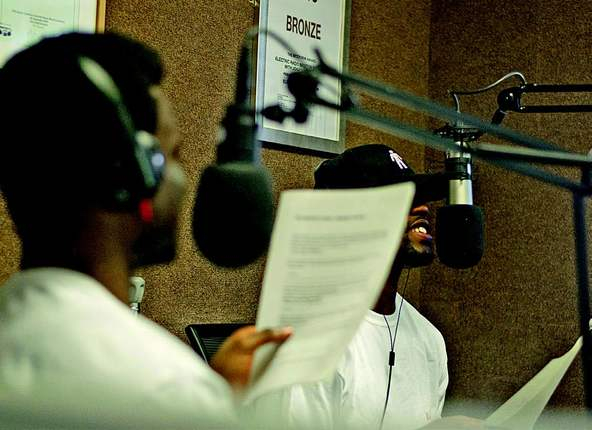Two inmates at Her Majesty’s Prison Brixton, in London, broadcast on National Prison Radio. (Photograph courtesy of Phil Maguire)