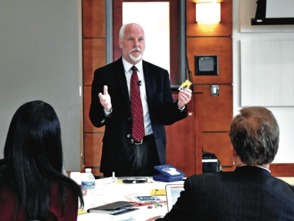 Fred Wells Brason II leads a seminar on his organization’s model at the New College Institute in Martinsville, Va., on March 9, 2016. (Photo courtesy of Piedmont Community Services)