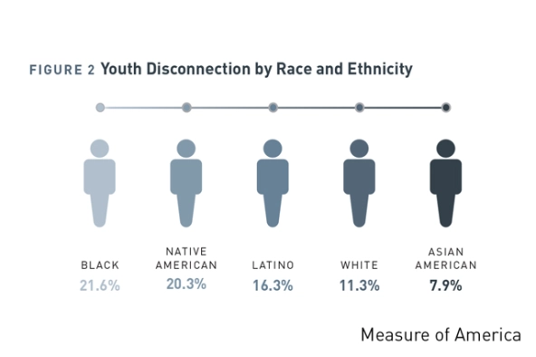 Youth disconnection by race and ethnicity (nationally). (Image courtesy of Measure of America)