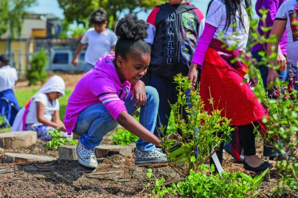 “The goal of Green Schoolyards America is to use school land to improve the well-being of children and the environment at the same time,” Danks explains. “We’re equally interested in outcomes for children’s learning and health and social-emotional well-being as we are in watersheds, habitats, air quality, and climate change.” Ultimately, the green schoolyards movement is about modeling ecologically rich cities of the future that we might like to live in and, in the process, restoring our relationship with the natural world.