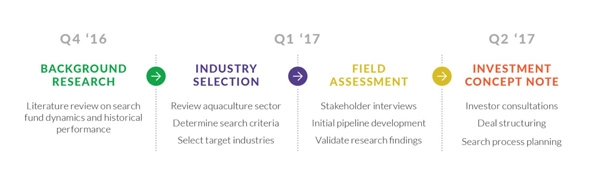 After three months market testing the idea in the Thai aquaculture industry, we created an initial concept note and drafted an initial investment prospectus, which is still in progress. The market testing included many of the activities normally undertaken by a searcher: identifying potential markets, talking with potential investors, and developing an initial pipeline. However, SSG concluded that it was not feasible for the firm to launch an impact search fund itself given that it requires a dedicated, full-time search entrepreneur. (SSG continues to support the initiative, which an individual affiliated with the firm is pursuing.) Nevertheless, given the potential benefits and impacts of impact search funds, SSG is now in the process of establishing an impact search fund accelerator, which will aim to attract talented entrepreneurs while simultaneously building the ecosystem necessary support the impact search funds. We are actively developing partnerships with stakeholders within the traditional search, impact investing, entrepreneurship, and business school communities. We anticipate launching its initial events before year’s end in Boston, Chicago, and the Bay Area.