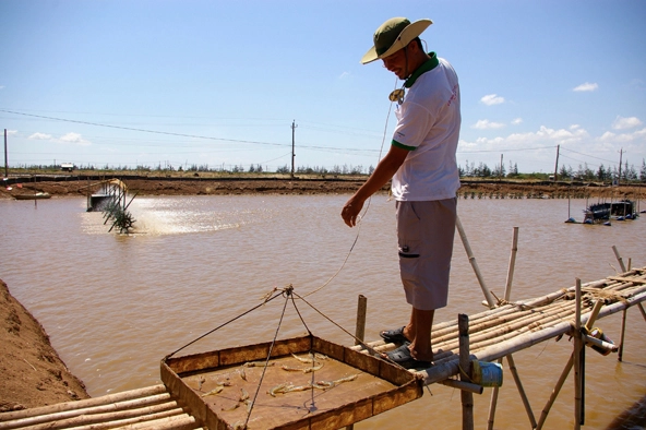 Sustainable white-legged shrimp harvesting (Photo by Tim Moore)