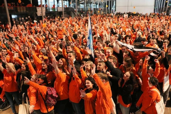 2,000 Unis-Cité corps-members gather in Paris in the presence of the President of the French Republic to celebrate the 20th anniversary of the organization and the 5th anniversary of the French legislation on National Citizen Service it has inspired. (Photo courtesy of Unis-Cité)