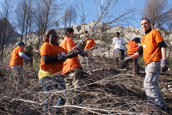 Youth volunteers participate in an outdoor project with Unis-Cité. (Photo courtesy of Unis-Cité)
