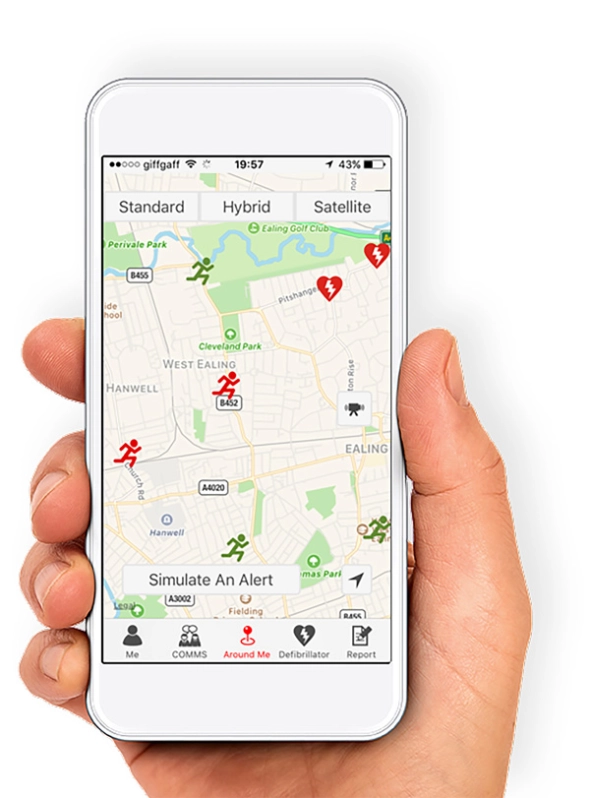 GoodSAM, the world's most advanced emergency services mobile technology platform, maps the proximity of lifesavers. (Photograph courtesy of GoodSAM)