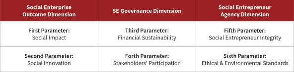 Social Enterprise Outcome: This dimension is concerned with social impact and innovation within the political, social, economic, and cultural contexts of each country. A social enterprise is focused on the social impact it aspires to achieve, rather than profit, and on improving the living conditions for marginalized and less-privileged groups and communities. A social enterprise also offers innovative solutions to a social problem at the business model, production, and distribution levels.