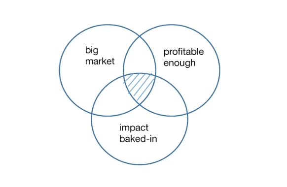 That Venn diagram has taught Mulago is that there isn’t much of a “fortune at the bottom of the pyramid”—at least not if you’re serious about impact—and impact investing as currently practiced may not have that much to offer the poorest of the poor. Sweet-spot business ideas—where a big market, attractive profits, meet baked-in impact—are precious. When we find them, let’s make sure the right money pours in the right way. In the meantime, let’s not fool ourselves about the rest.