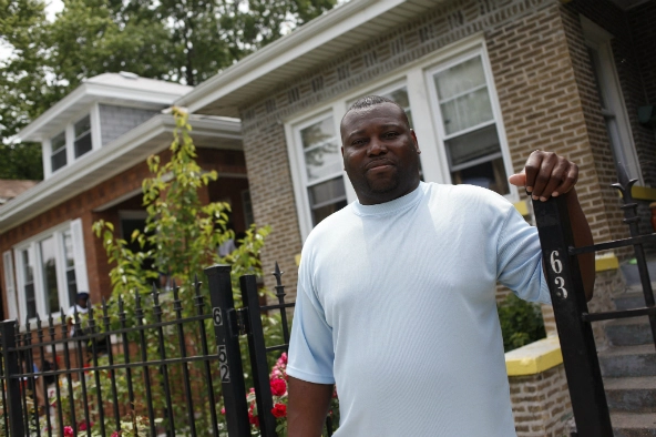 Proud new homeowner in Chicago Lawn. (Photo by Bill Healy/LISC Chicago)
