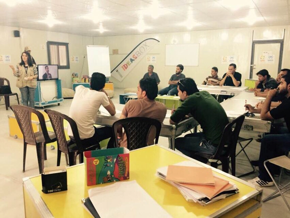 Syrian learners in a refugee camp in Jordan attend a blended learning session on soft skills using Edraak courses.