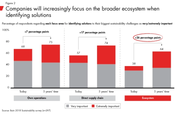 As a result, consumer goods companies and retailers that have worked solely within their own four walls, with only their immediate suppliers (or those that have just flatly asked suppliers to assure them their products and practices are sustainable), now realize they need to get deeper into the details of how those products are produced (see chart below).