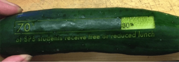 Laser-cutting food security data into cucumbers and other vegetables for a food event got people talking.