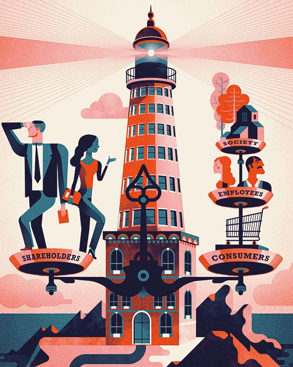Led by the nonprofit B Lab, the B Corp movement aims to provide a solution to the increasing recognition that corporations’ embrace of “shareholder primacy” is a root cause of many fundamental problems in the world today, including climate change, income inequality, the difficulty many regions have faced in responding to the COVID-19 pandemic, and even the racial injustices that pervade our institutions. Politicians as diverse as US Senators Marco Rubio and Elizabeth Warren have condemned the philosophy of putting shareholders first as disastrous for the US economy. Recently, this idea has started to gain traction among corporate leaders. The Business Roundtable (BRT), a trade group that represents approximately 200 of America’s largest companies, changed its statement on “the purpose of a corporation,” encouraging corporations not only to meet the needs of shareholders, but also to focus more on its stakeholders, including employees, consumers, and society.