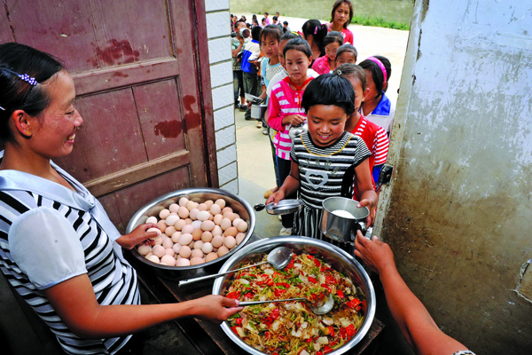 Deng Fei's Free Lunch campaign serves more than 70,000 low-income schoolchildren living in rural China daily. (Photo by Zhui Ying/ImagineChina)