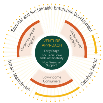 Interestingly, the past few years have seen a greater consensus among impact investors in India on their investment approach. They emulate the approach of mainstream venture capital firms but extend it to investing in impact enterprises. This venture approach involves making investments at an early stage in for-profit enterprises that operate in underserved markets and critical needs sectors. It is characterized by: