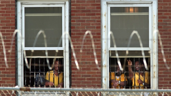 Inmates at the “hellish” St. Louis Medium Security Institution, also known as the Workhouse, await the arrival of temporary air-conditioning units on July 24, 2017. (Photo by Roger Cohen for The St. Louis Post-dispatch)