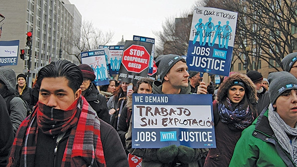 Retail and restaurant workers participate in a 2016 Jobs With Justice march in Washington, DC. (Photo courtesy of Jobs With Justice)