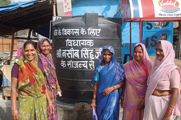 MHT members showcase a new community water tank in Ahmedabad, India’s sixth-largest city. (Photo courtesy of MHT)