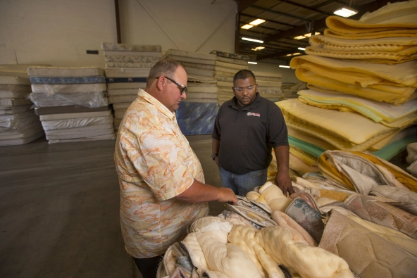 Art Taylor, the employee who pushed us toward mattress recycling in the first place came to us straight out of prison. When he suggested we could do something different with the mattresses people were donating to St. Vincent (which also operates retail thrift stores) our executive director, Terry McDonald, listened. Taylor started with us as a general laborer and rose up through the ranks to project manager. Some of our other project managers have troubled backstories as well—they’ve done some time in jail or prison, are in recovery from substance abuse, have had a stretch of homelessness, or have been out of work for a long period. But we have found that by giving people who have barriers to employment—but who also have common sense, energy, and creativity—a chance results in employees whose loyalty and desire to improve benefits everyone. McDonald says, “We do it because it strengthens the internal culture of the organization.”.