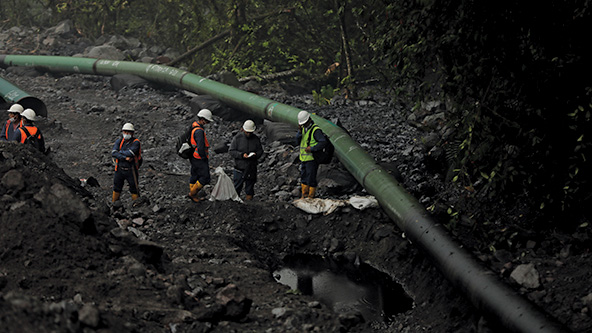 Rains in January 2022 triggered landslides that ruptured the OCP oil pipeline near San Luis, Ecuador, in the country’s Amazonian region. (Photo by Franklin Jacome/Getty Images)