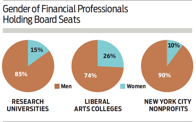 Board members whose biographical backgrounds could not be found and those whose professional biographies revealed no discernible professional career but who were married to someone in financial services were not included in the data. (This was also the case for liberal arts colleges and New York City nonprofits.) If spouses of people whose wealth was drawn from the financial services industry were included, the number of finance-related board membership slots at these nonprofits would all be even higher.