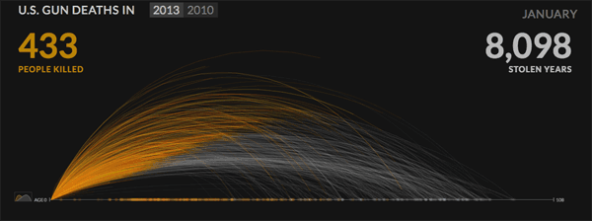 There’s certainly data involved in this visualization, and the statistical modeling that drives its estimate of the age of gun victims is quite clever and advanced. But there’s really only one statistic that matters on display: number of stolen years.