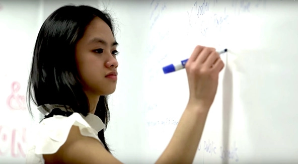 A student applies design thinking to a social problem at the Beeck Center for Social Impact and Innovation at Georgetown University.