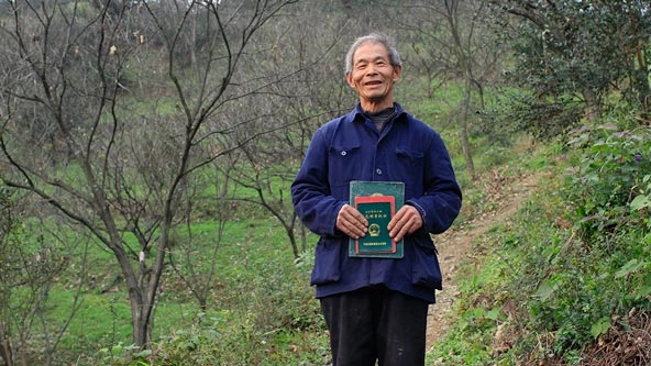 A Chinese farmer holds documents that establish his rights to his land. (Photo courtesy of Landesa)