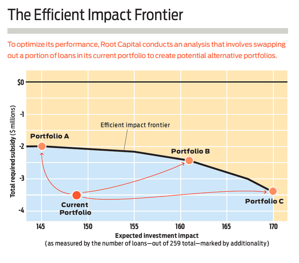 Applying tools such as the efficient impact frontier to integrated FSE data helps Root Capital to create greater impact with a given amount of grant and investment funding. These tools, we believe, can provide the transparency and the accountability that are necessary to scale up impact investing efforts—in particular, efforts that involve subsidized (or “concessionary”) investments.