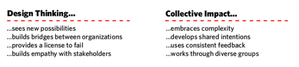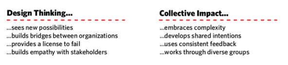As it turns out, the creative, collaborative, and empathic nature of design thinking complements collective impact frameworks, and gives leaders tools to engage and empower community members as designers of their own solutions.